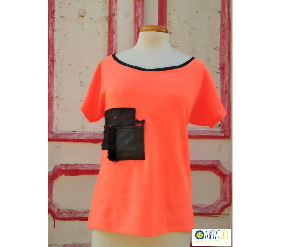 ❤️ Warm vivid orange T-shirt with black & white pocket!